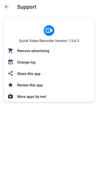 Для работы Quick Video Recorder требуется Android 9.0 или выше. Текущая версия программного обеспечения — 91199214.9, и вы можете запустить его на английском, немецком и португальском языках.